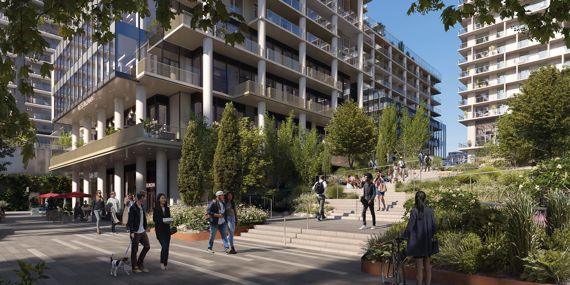 Experience an entire city block of tree-lined paths that connect you to community spaces and outdoor dining, and offer full immersion in nature. Our design philosophy puts people first — meaning every inch of outdoor space is made for people, pets, and greenery only.