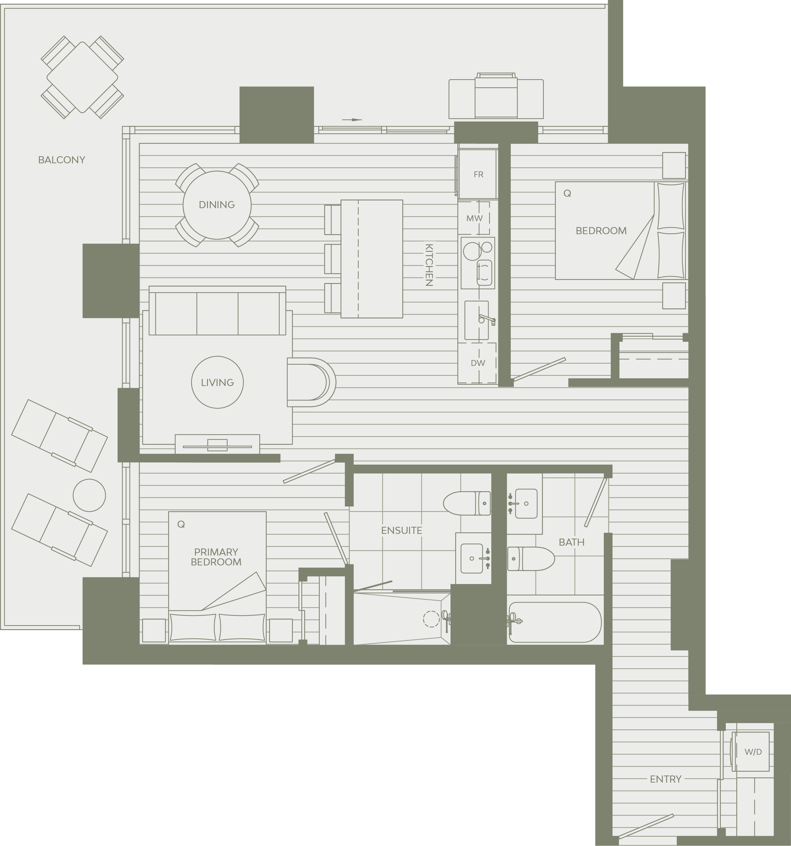 Featured in the Rise collection of The Residences at Brentwood Block, this 863 square foot 2 Bed home offers an open, spacious layout with wraparound balcony that exemplifies Grosvenor's world of experience incorporated into every aspect of the design.