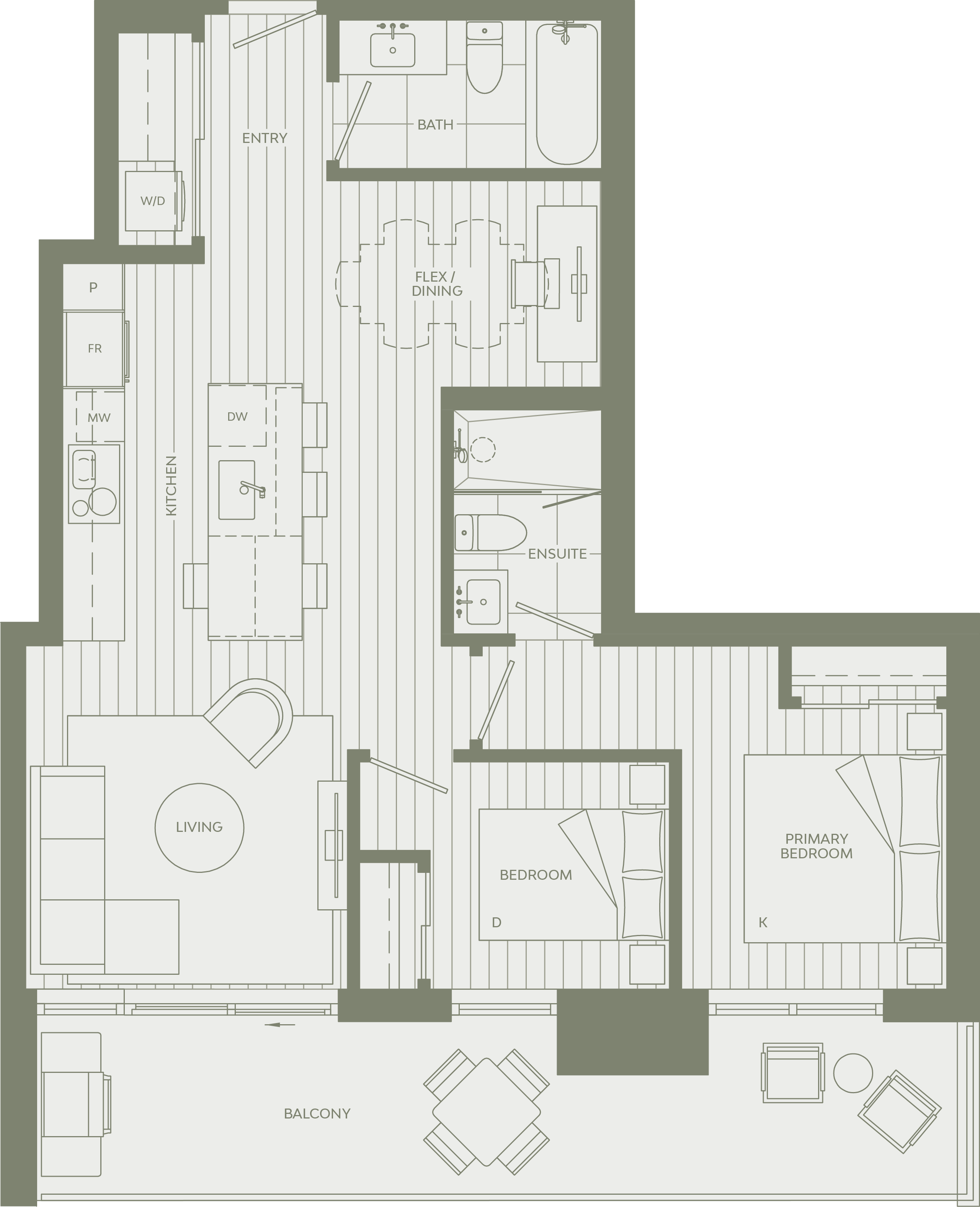 Featured in the Park collection of The Residences at Brentwood Block, this 763 square foot 2 Bed home offers southwest views. The home's state-of-the-art interiors with European-crafted kitchens exemplifies Grosvenor's world of experience incorporated into every aspect of the design.