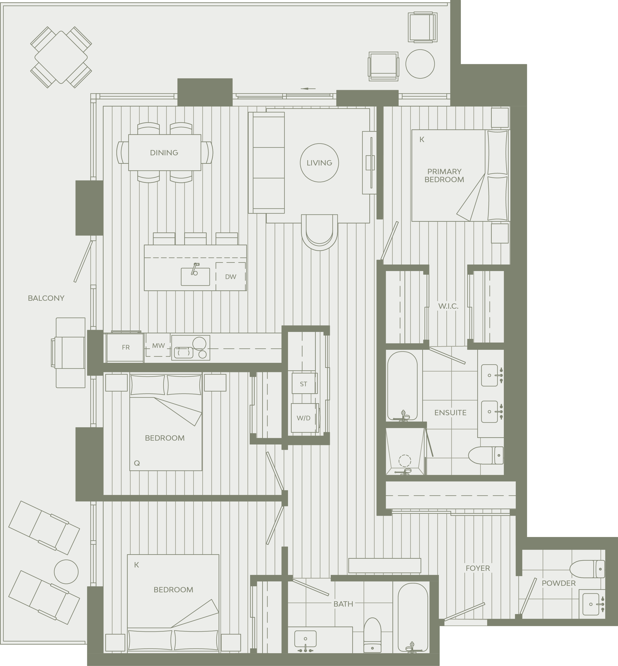 Featured in the Horizon collection of The Residences at Brentwood Block, this 1073 square foot 3 Bed home offers southwest / southeast views. The home's elevated interiors with expansive wraparound balcony exemplifies Grosvenor's world of experience incorporated into every aspect of the design.