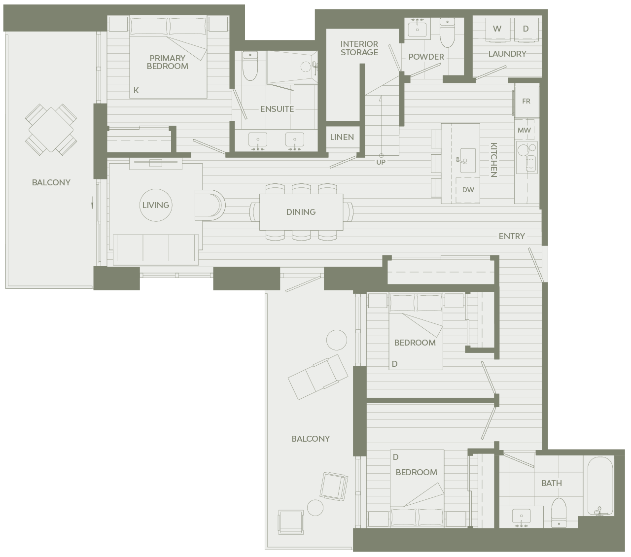 Featured in the Horizon collection of The Residences at Brentwood Block, this 1166 square foot 3 Bed home offers elevated interiors with expansive wraparound balcony that exemplifies Grosvenor's world of experience incorporated into every aspect of the design.